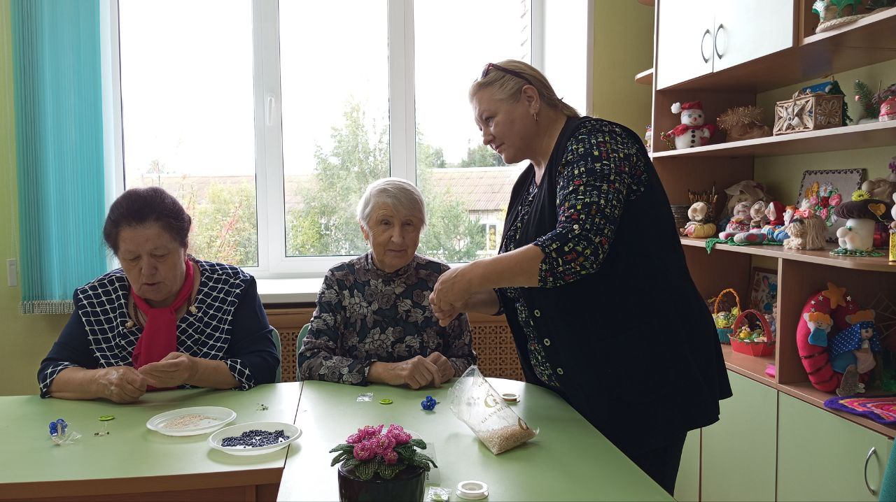 В отделении дневного пребывания ГБУ "КЦСОН Краснобаковского муниципального округа" проходил мастер-класс по бисероплетению. Обслуживаемые с увлечением занимались бисероплетением. Изготовленные своими руками броши стали прекрасным украшением.