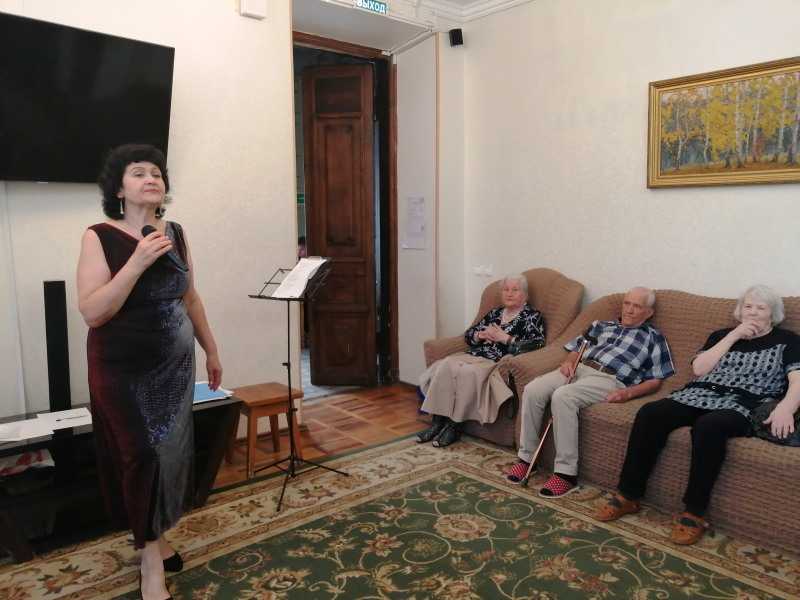 В отделении дневного пребывания выступила очаровательная, талантливая исполнительница эстрадных песен Зарифа Смирнова. Артистка после длительного перерыва возобновила концертную деятельность, чему все её поклонники бесконечно рады.