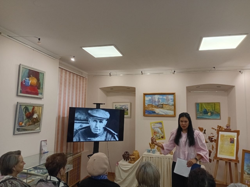 Отдыхающие отделения дневного пребывания побывали на выставке Татьяны Николаевны Степановой «Мир через искусство» в МБУК " Историко-художественный музей", где познакомились с творчеством мастера из Каменск-Уральска. Татьяна Николаевна увлекается рисунком, живописью и графикой, создавая натюрморты, портреты и пейзажи. Она экспериментирует с техниками «кляксография» и «золотое сечение», как в картинах «Полёт во сне и наяву» и «Золотые струны».